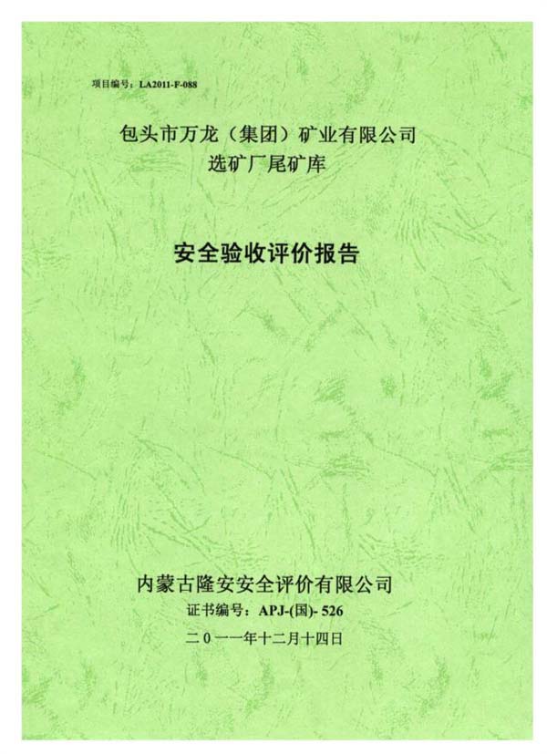 包頭市固陽縣豐潤礦業(yè)有限責任公司尾礦庫安全現(xiàn)狀評價報告