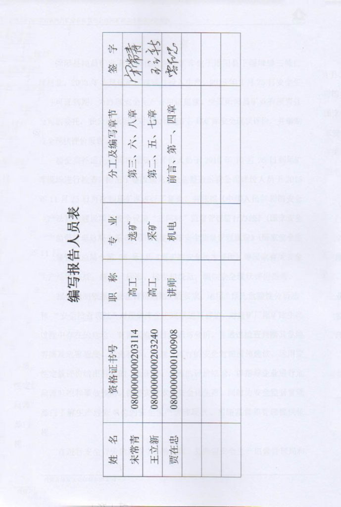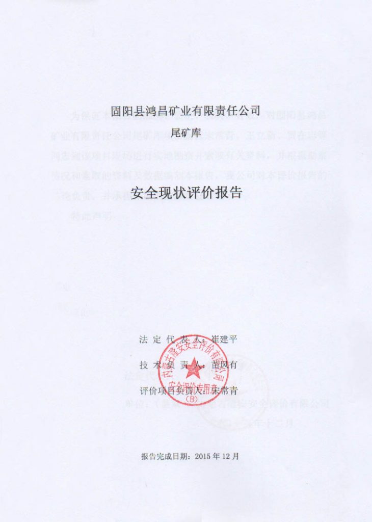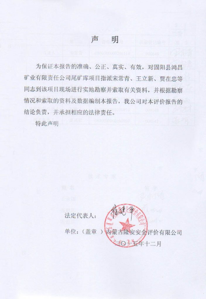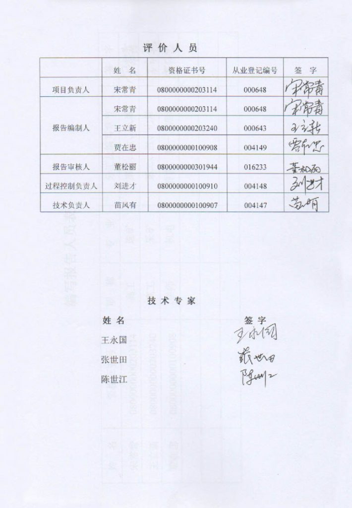 固陽(yáng)縣鴻昌礦業(yè)有限責(zé)任公司尾礦庫(kù)安全現(xiàn)狀評(píng)價(jià)報(bào)告 –簽字表