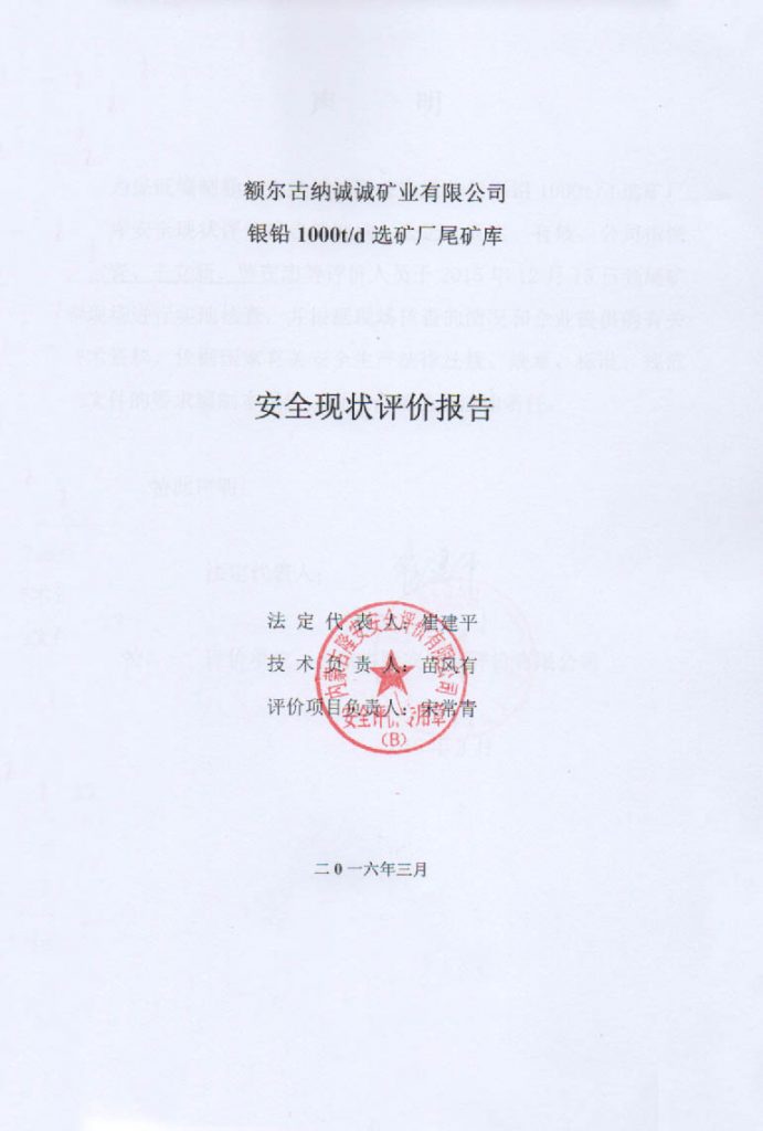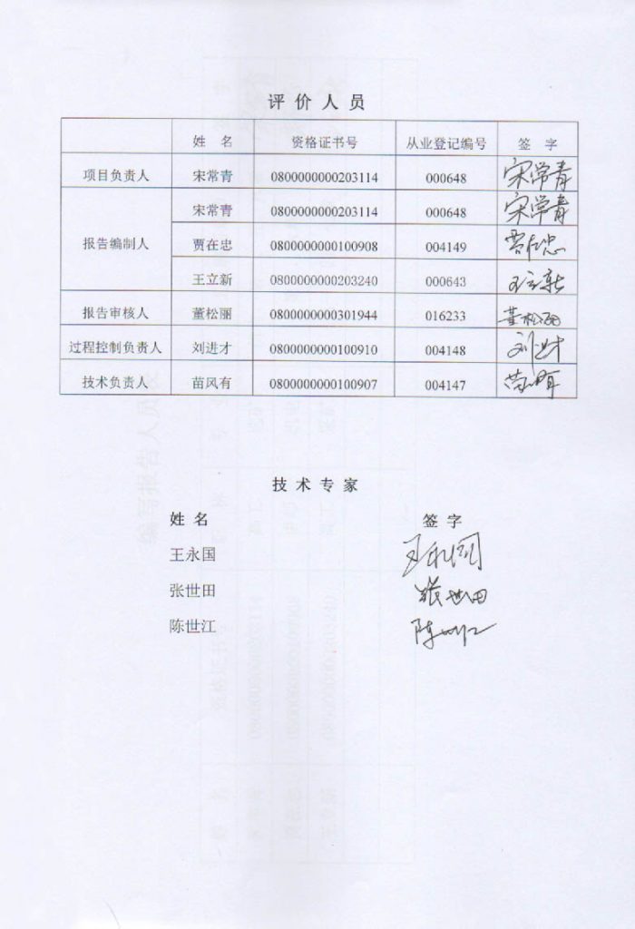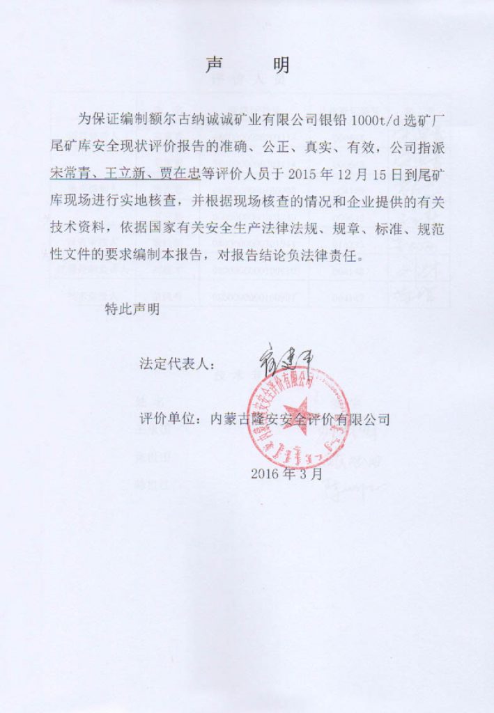 額爾古納誠誠礦業有限公司尾礦庫安全現狀評價報告–簽字表