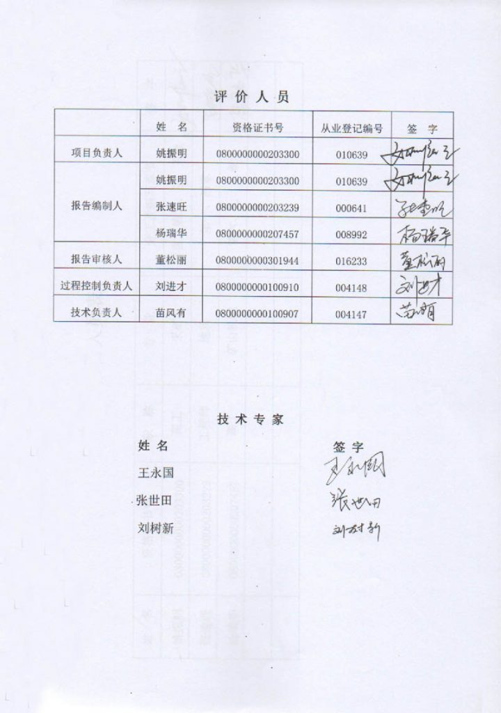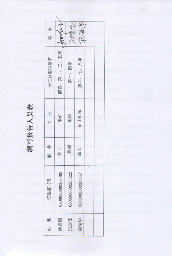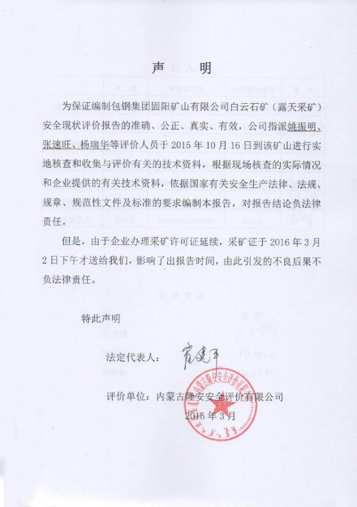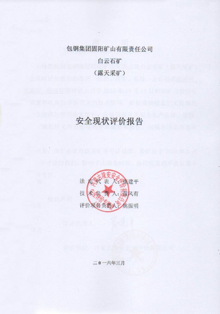 包鋼集團固陽礦山有限公司白云石礦安全現狀評價報告–簽字表