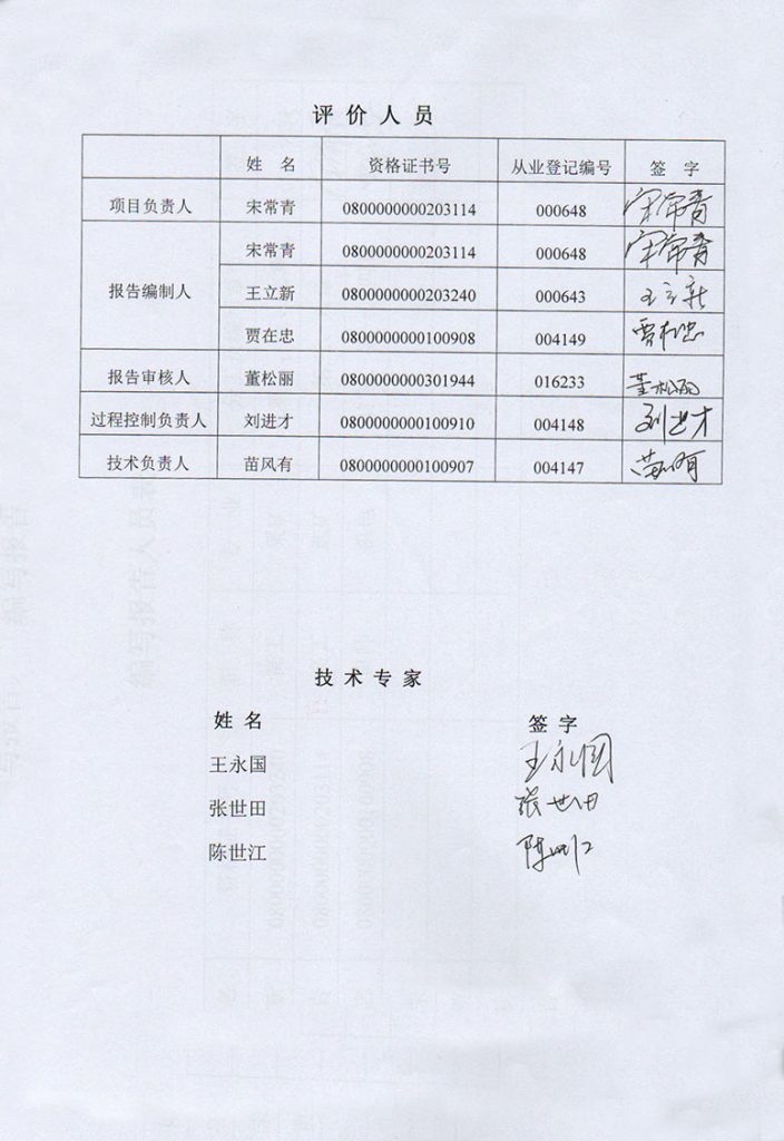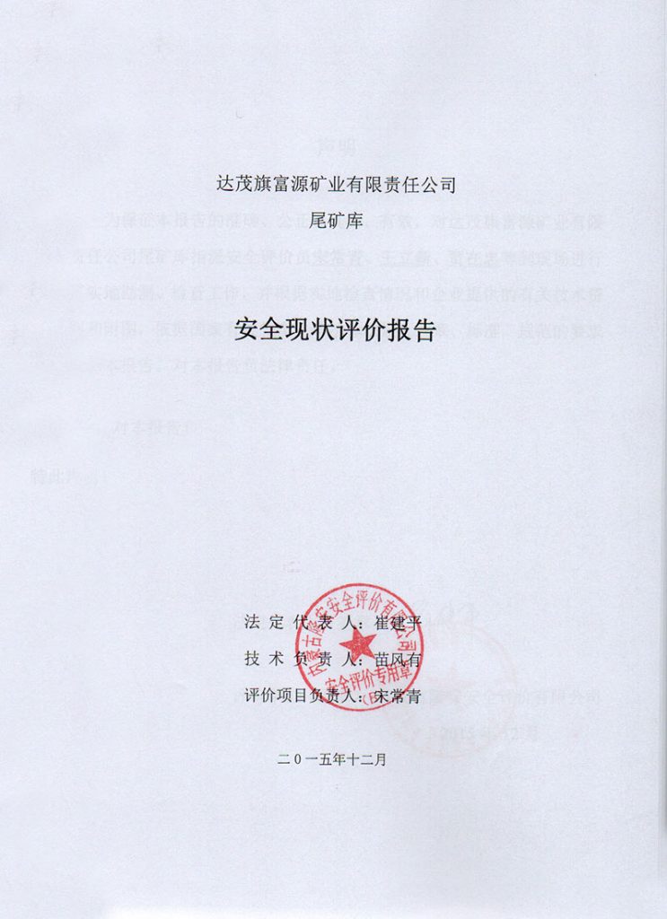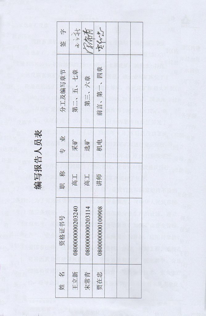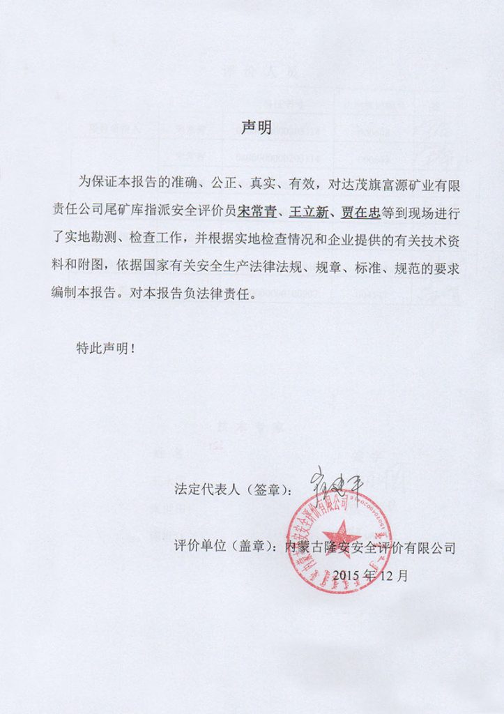 達茂旗富源礦業有限責任公司尾礦庫安全現狀評價報告–簽字表