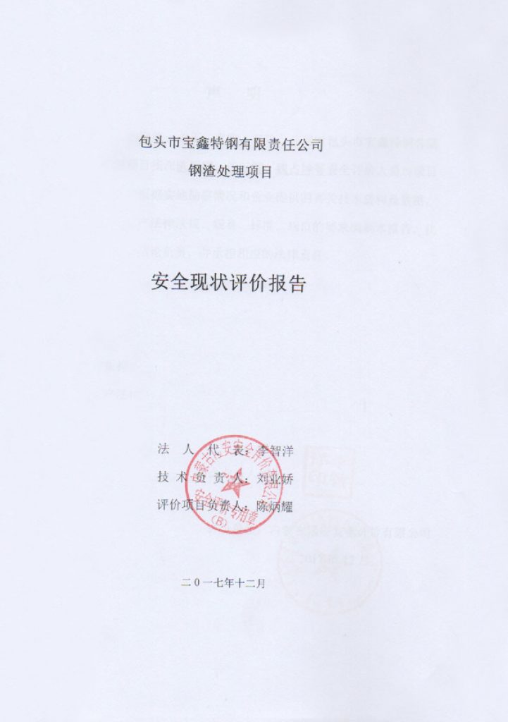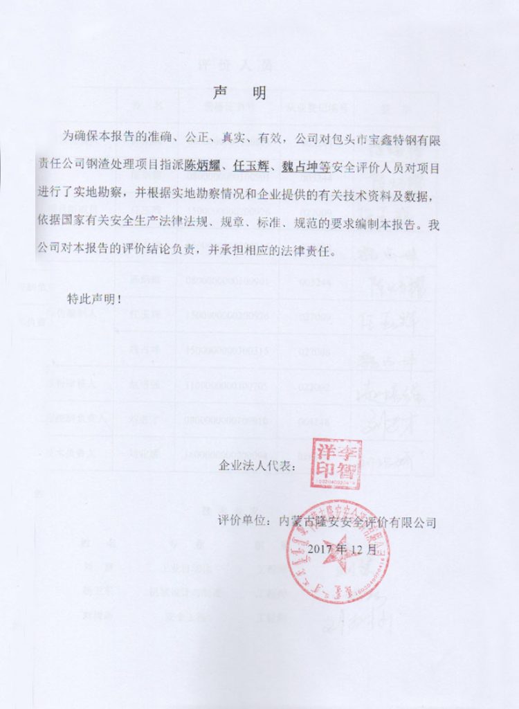 包頭市寶鑫特鋼有限責(zé)任公司鋼渣處理項(xiàng)目安全現(xiàn)狀評價報告–簽字表