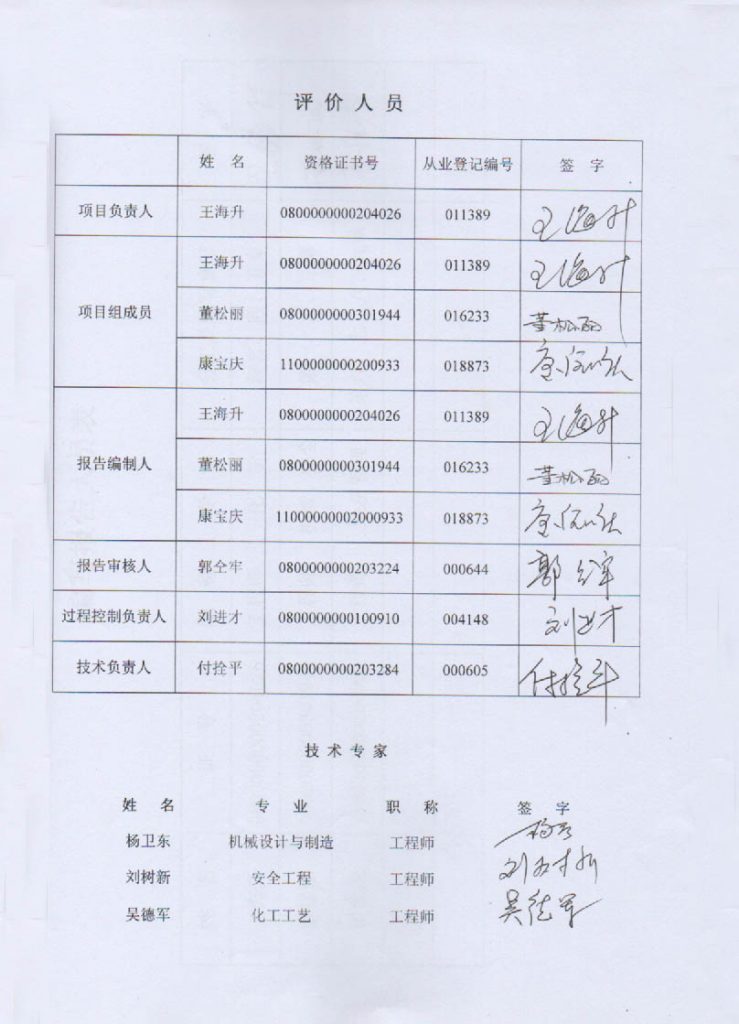 神華準格爾能源有限責任公司物資供應中心油品供應站安全現(xiàn)狀評價報告–簽字表