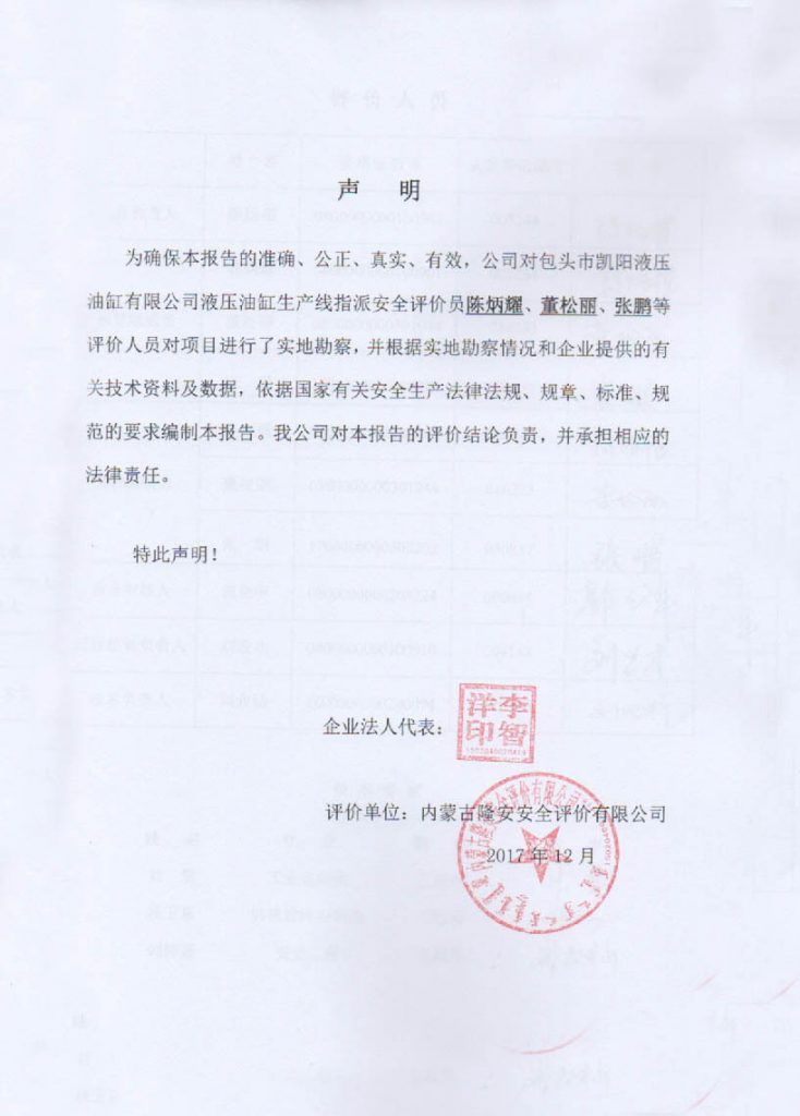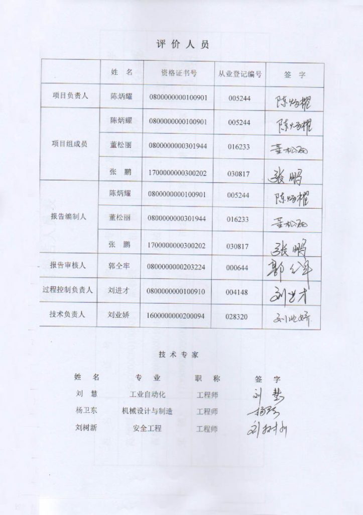 包頭市凱陽液壓油缸有限公司液壓油缸生產線安全現狀評價報告–簽字表