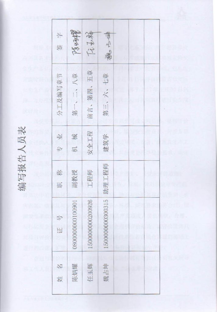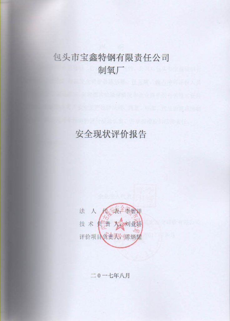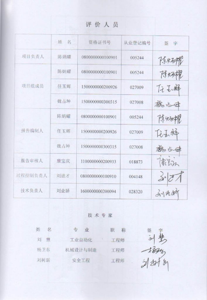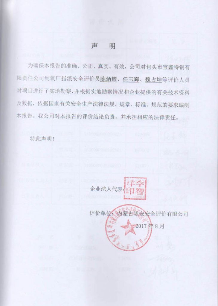 包頭市寶鑫特鋼有限責任公司制氧廠安全現狀評價報告–簽字表