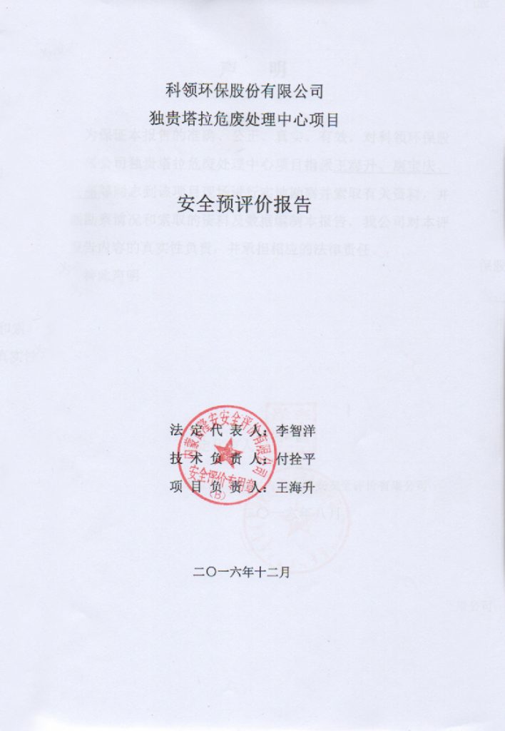 科領(lǐng)環(huán)保股份有限公司獨(dú)貴塔拉危廢處理中心項(xiàng)目安全預(yù)評(píng)價(jià)報(bào)告–簽字表