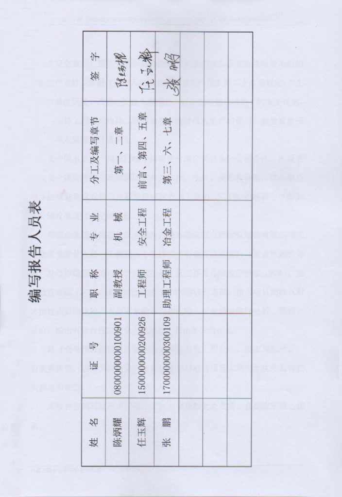 中國(guó)水電十一局三門峽千禧商貿(mào)有限公司包頭分公司新建廢鋼回收加工能力25萬(wàn)噸/年項(xiàng)目安全預(yù)評(píng)價(jià)報(bào)告–簽字表