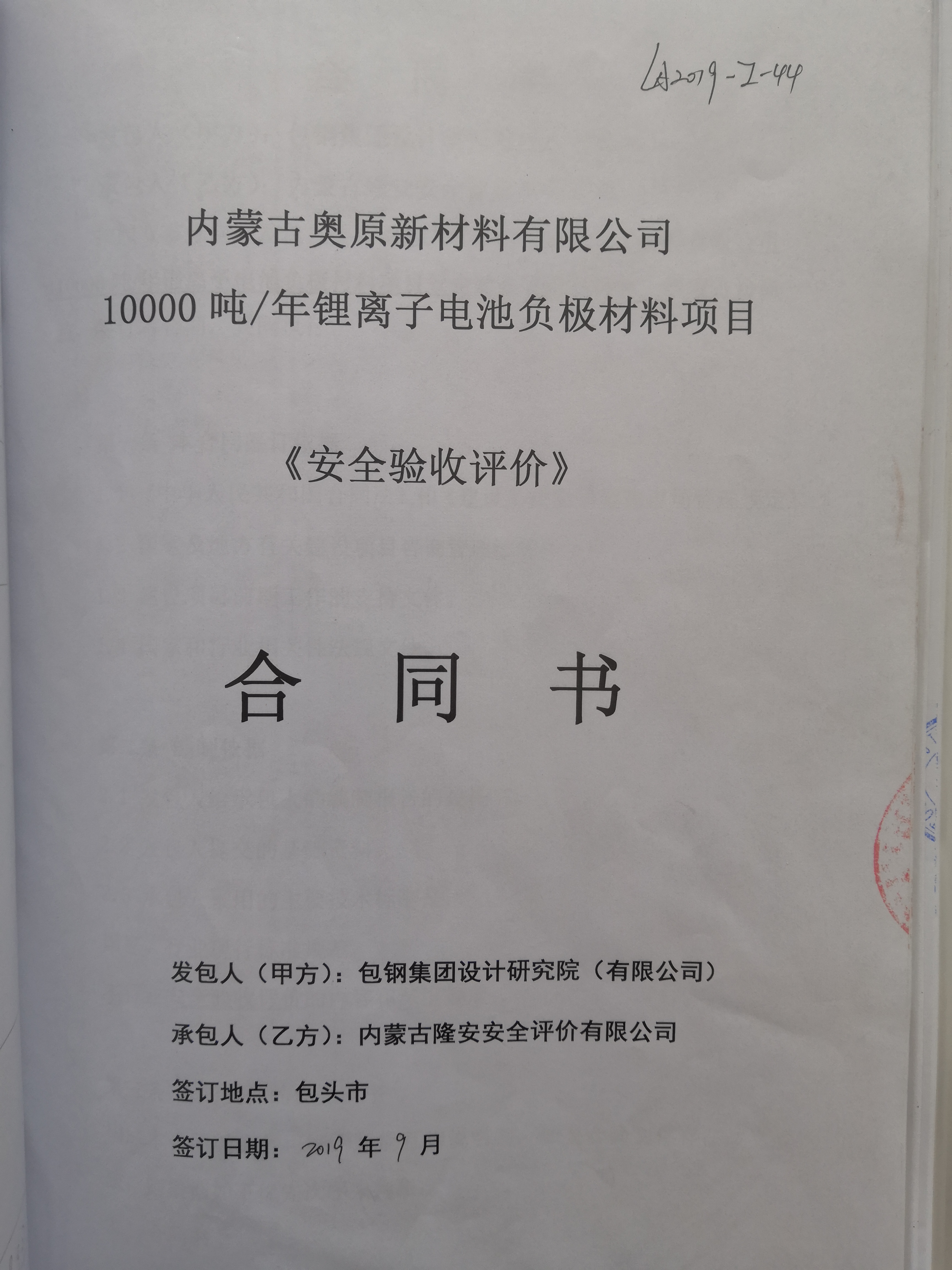評價結論:內蒙古隆安安全評價有限公司認為,內蒙古奧原新材料有限公司10000噸/年鋰離子電池負極材料項目(石墨化生產線及其附屬設施)符合相關安全生產法律、規范、標準的要求,具備安全設施竣工驗收條件。