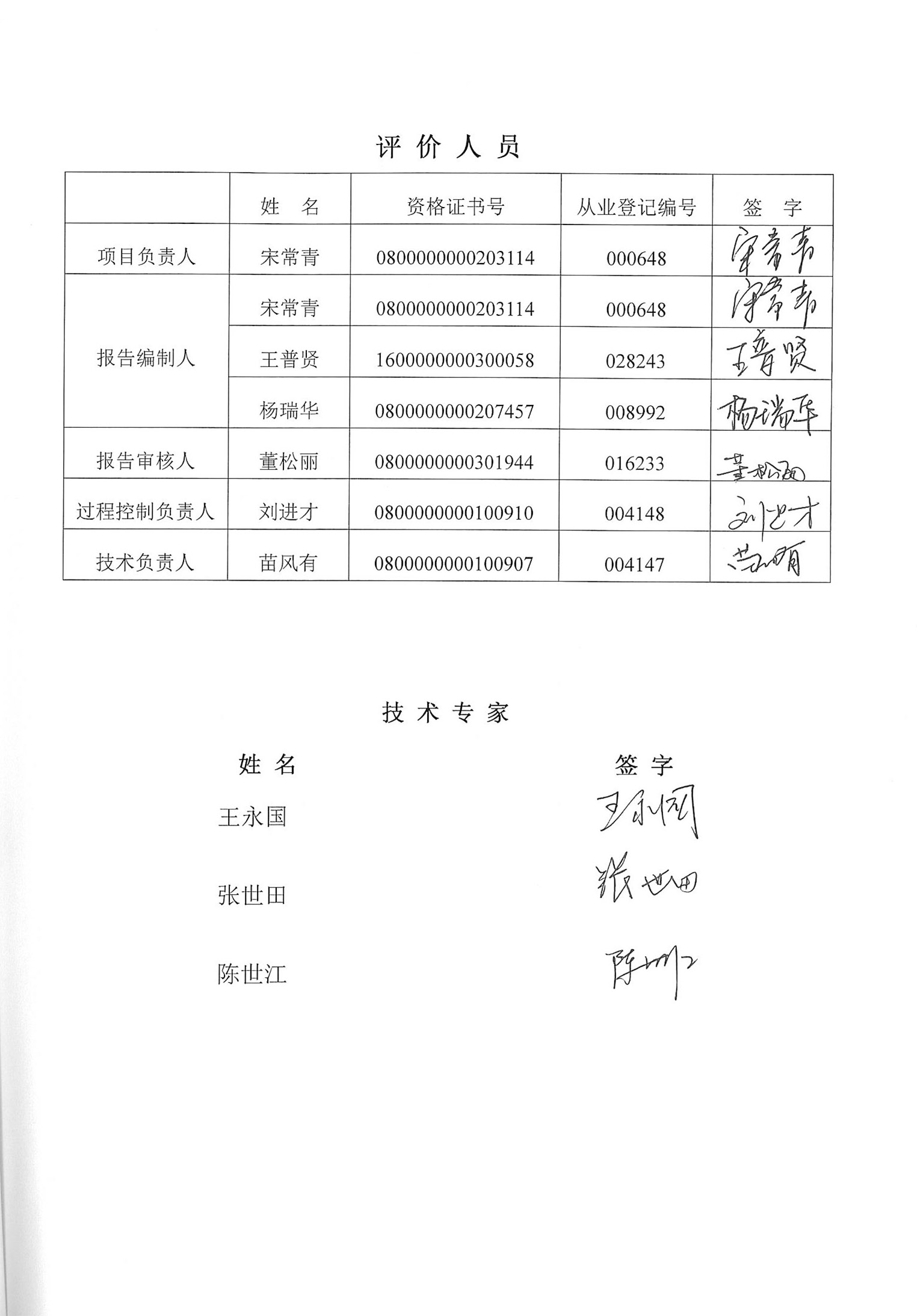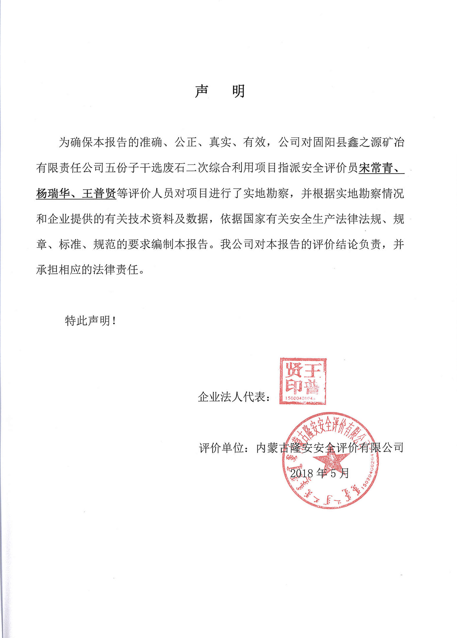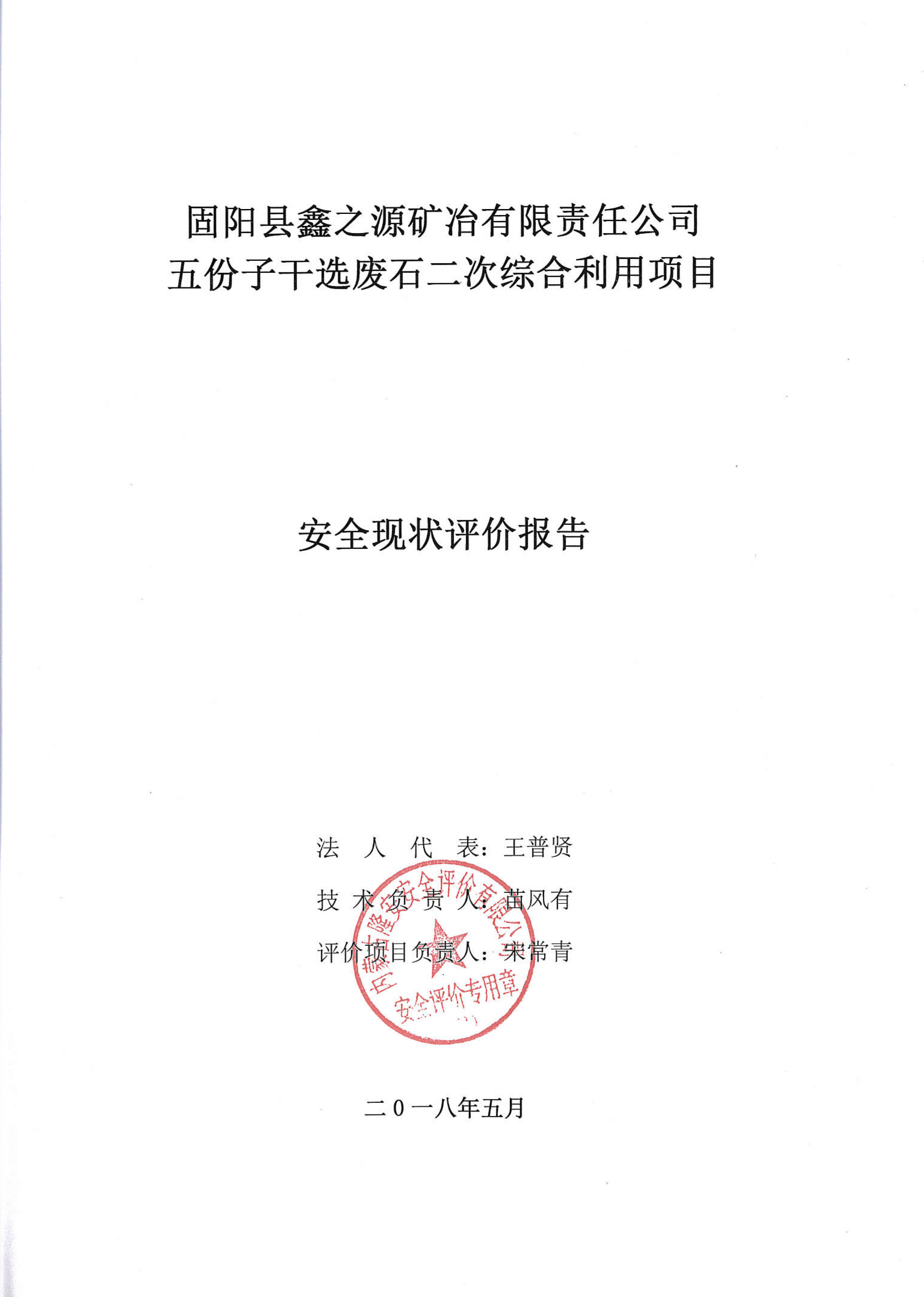 固陽縣鑫之源礦冶有限責任公司五份子干選廢石二次綜合利用項目安全現狀評價報告–簽字表