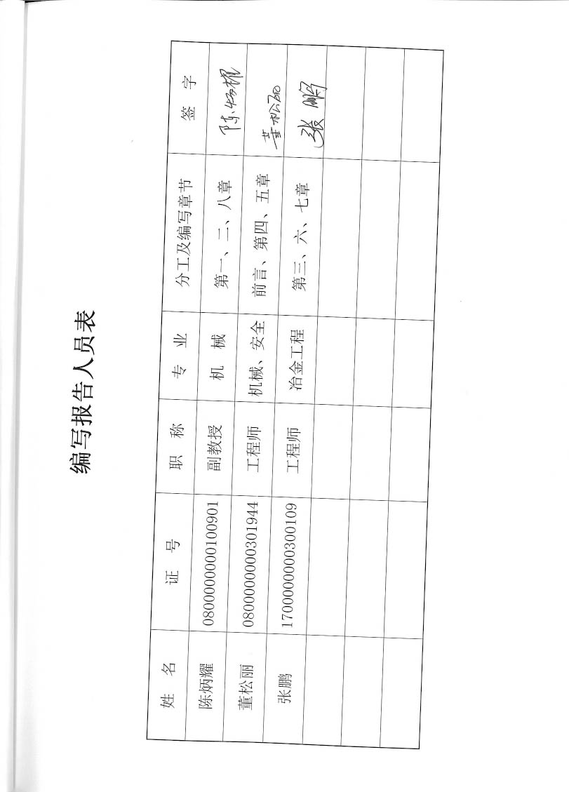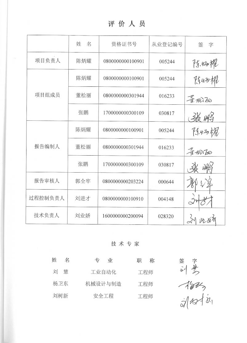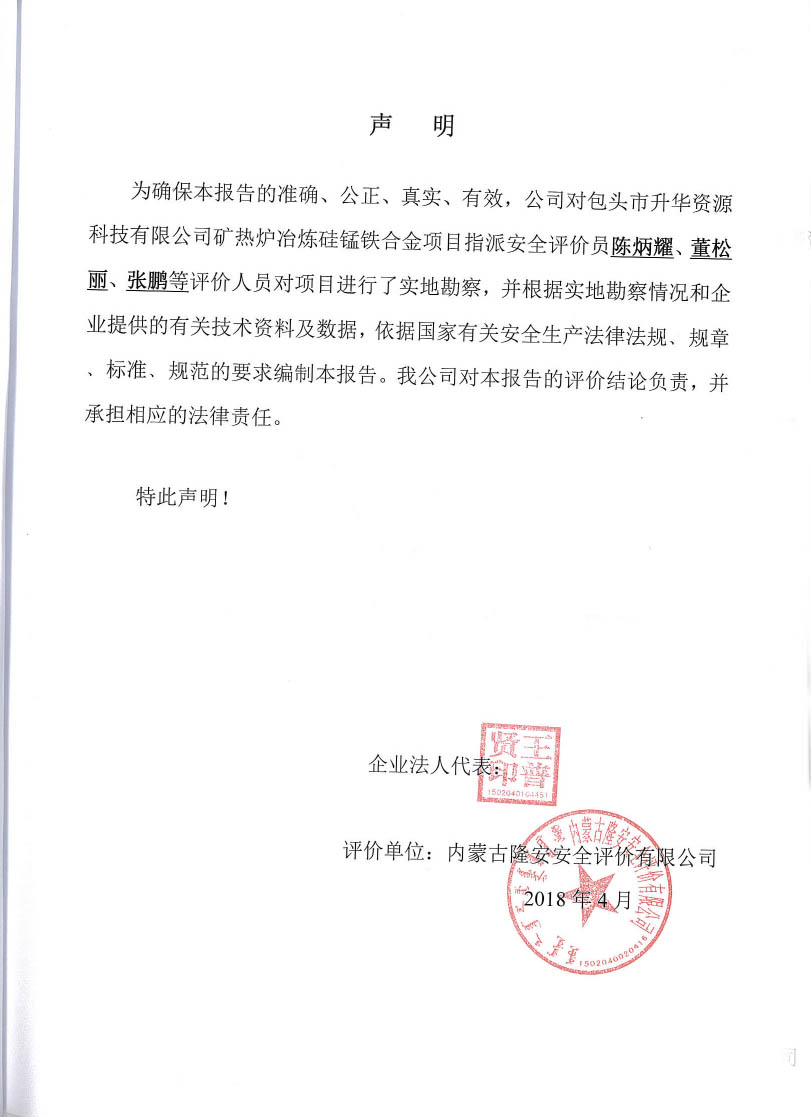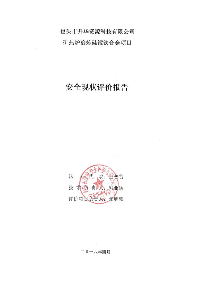 包頭市升華資源科技有限公司礦熱爐冶煉硅錳鐵合金項目安全現狀評價報告–簽字表