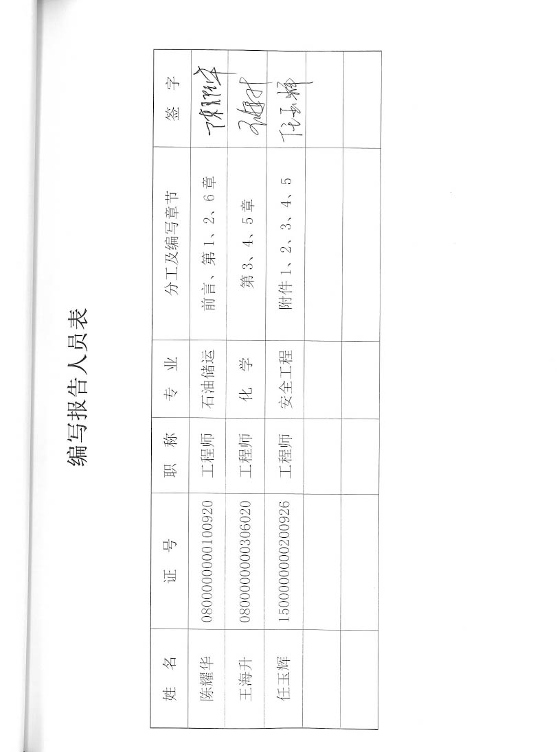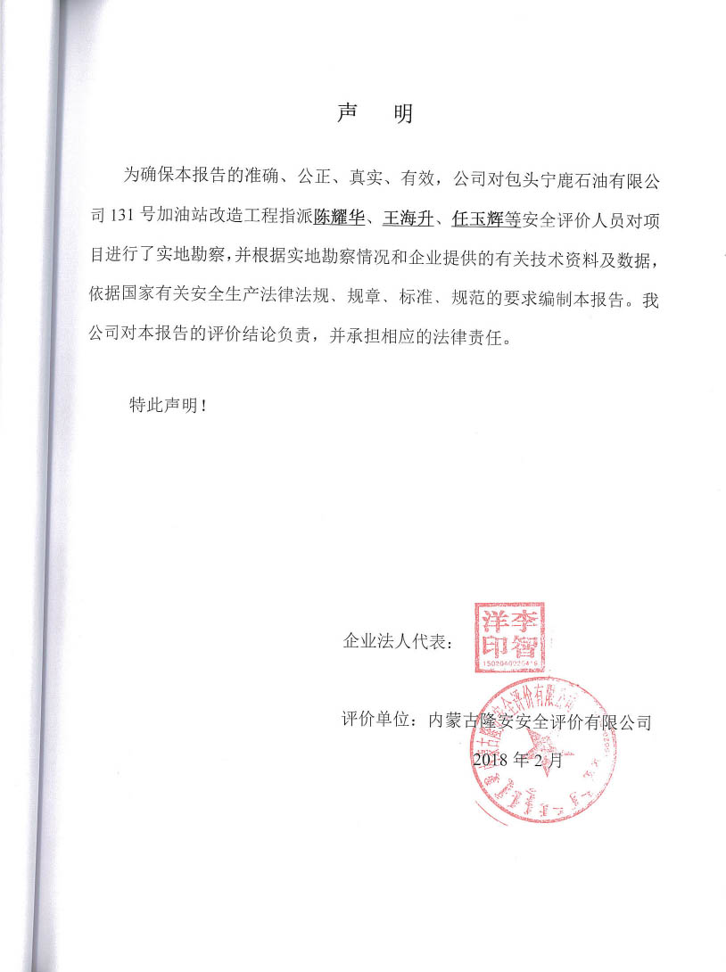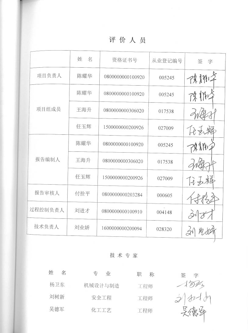 包頭寧鹿石油有限公司131號加油站改造工程安全設施竣工驗收評價報告–簽字表