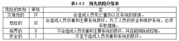 按危險(xiǎn)、有害因素導(dǎo)致的事故、有害的危險(xiǎn)(危害)程度,將危險(xiǎn)有害因素危險(xiǎn)程度劃分為四個(gè)危險(xiǎn)等級(jí),如表1-4-2所示。