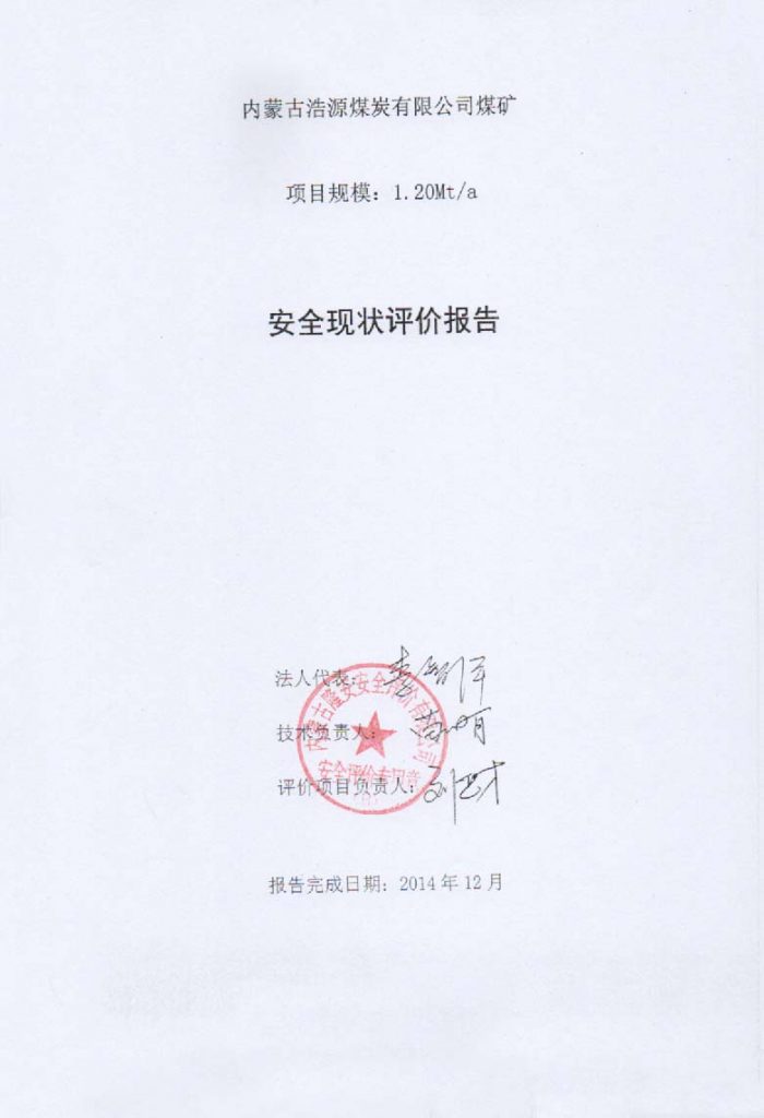 內蒙古浩源煤炭有限公司(露天)煤礦安全現狀評價報告–簽字表