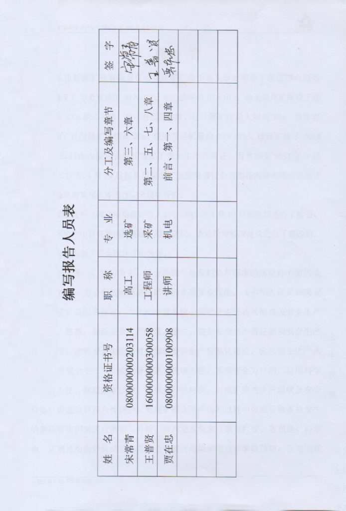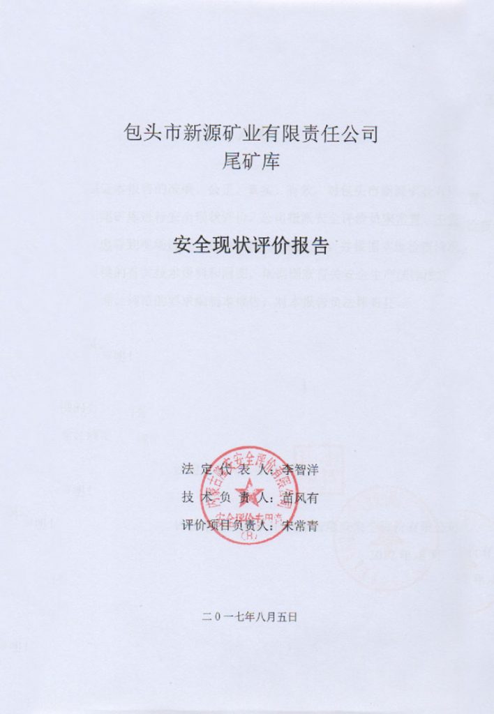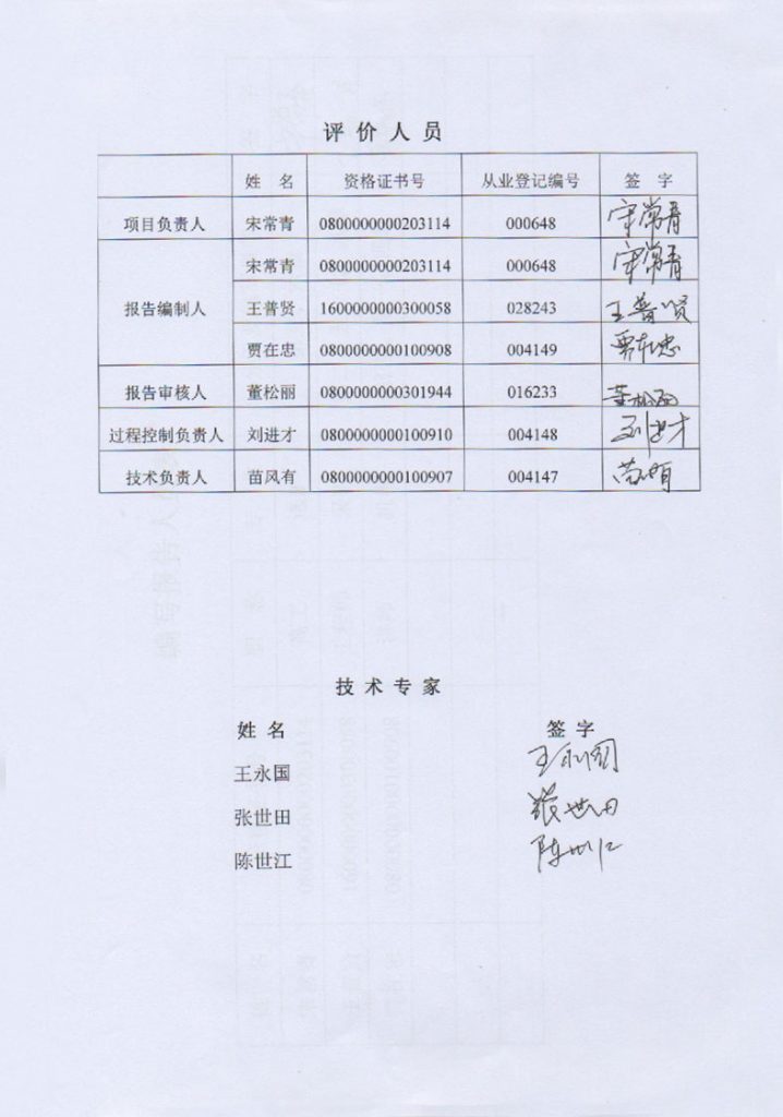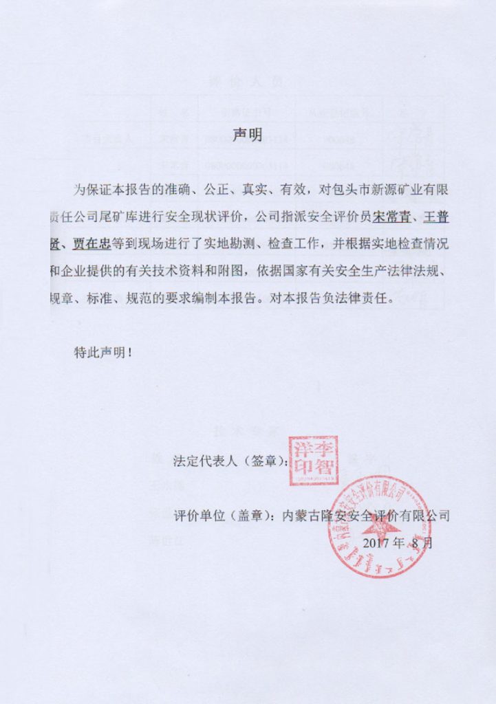包頭市新源礦業有限責任公司尾礦庫安全現狀評價報告–簽字表