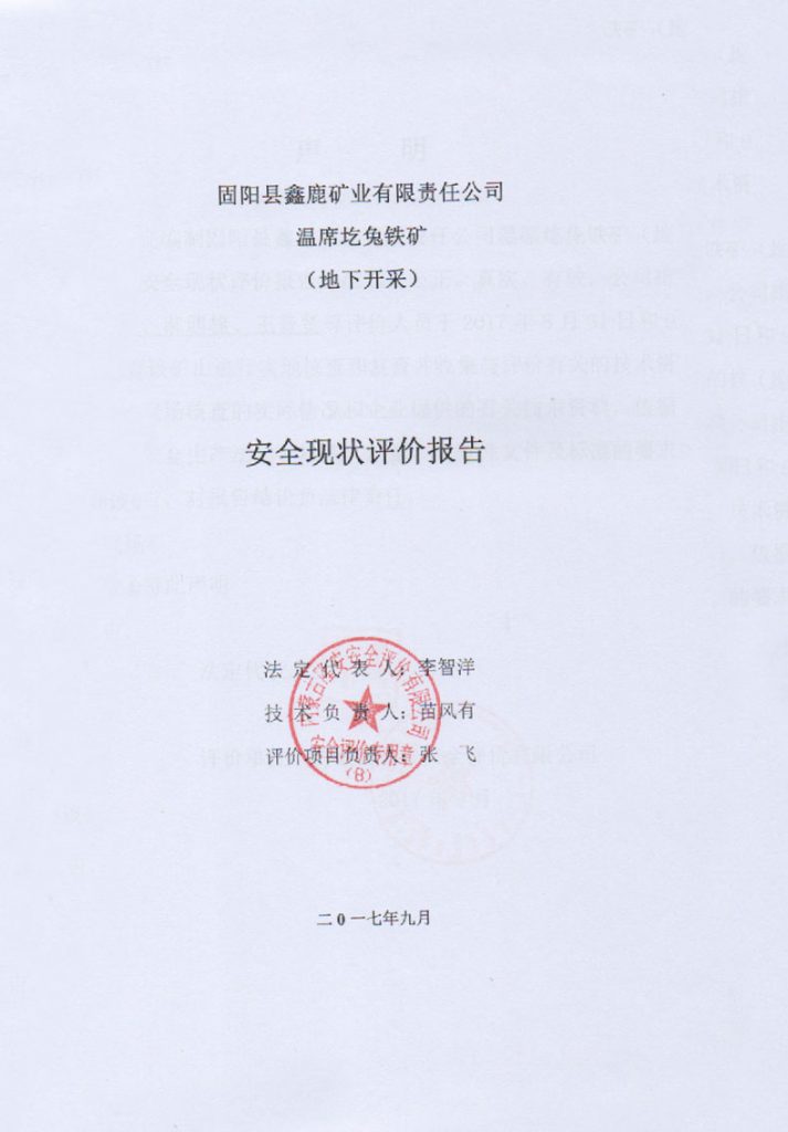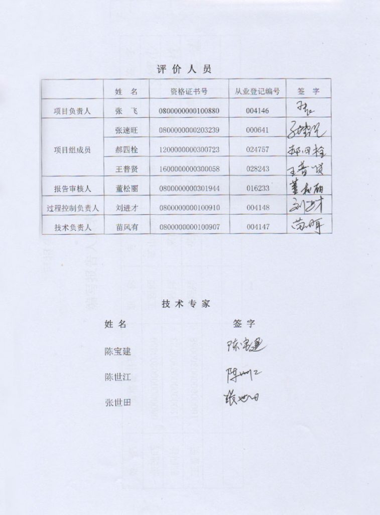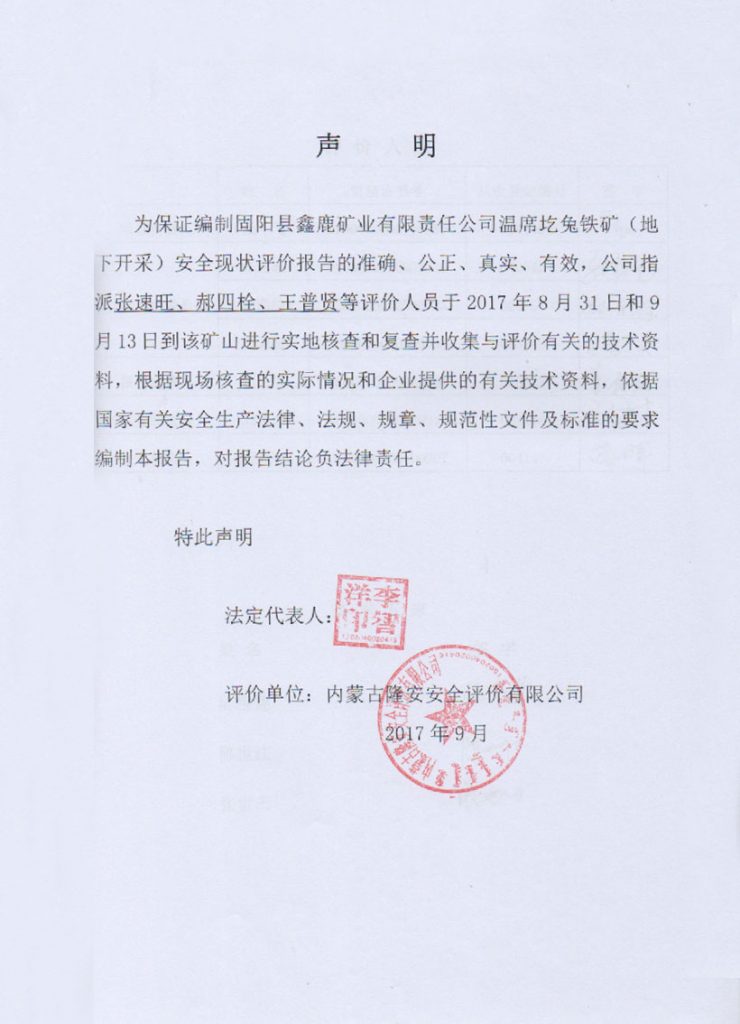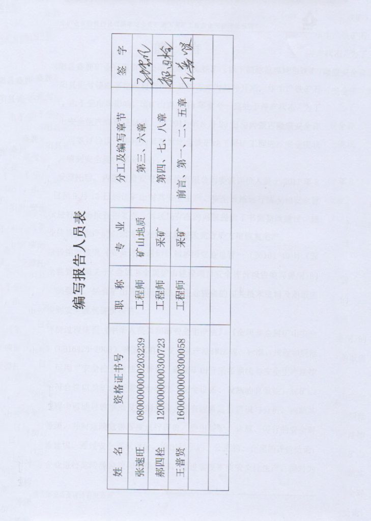 固陽縣鑫鹿礦業有限責任公司溫席圪兔鐵礦地下采礦工程安全現狀評價報告 –簽字表
