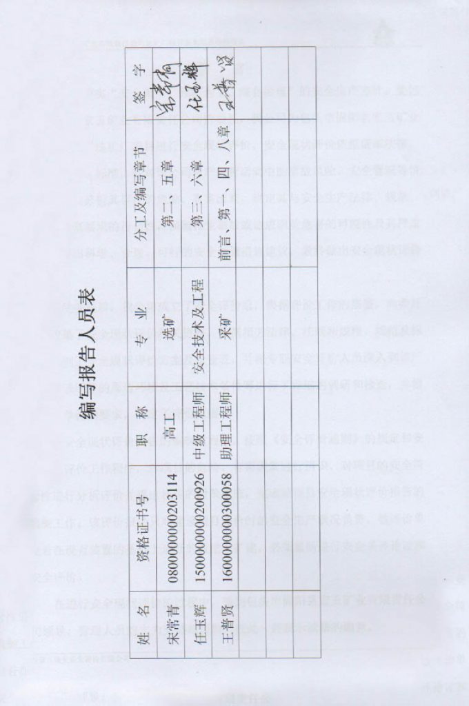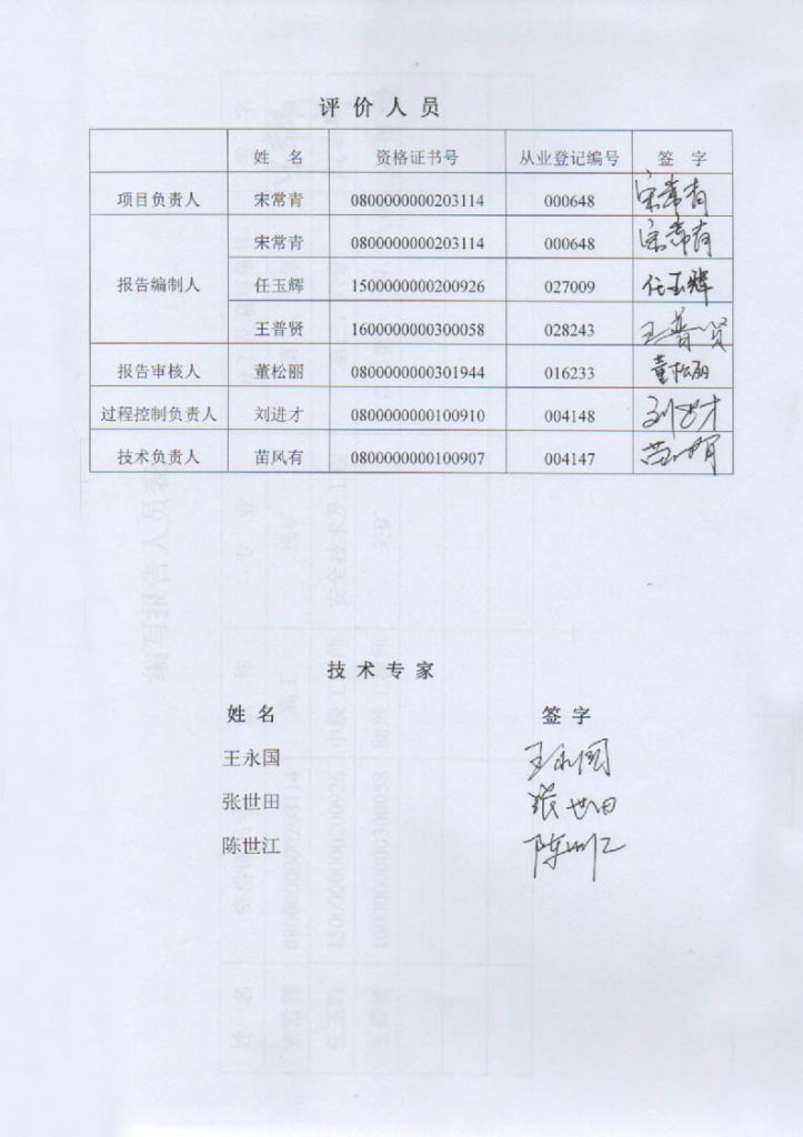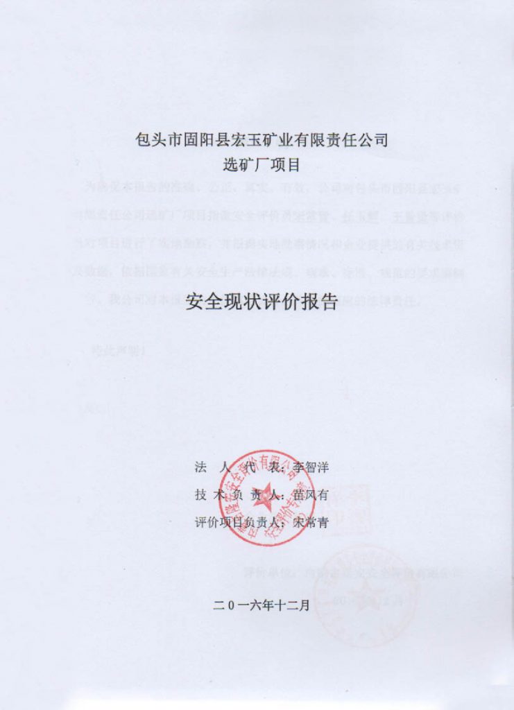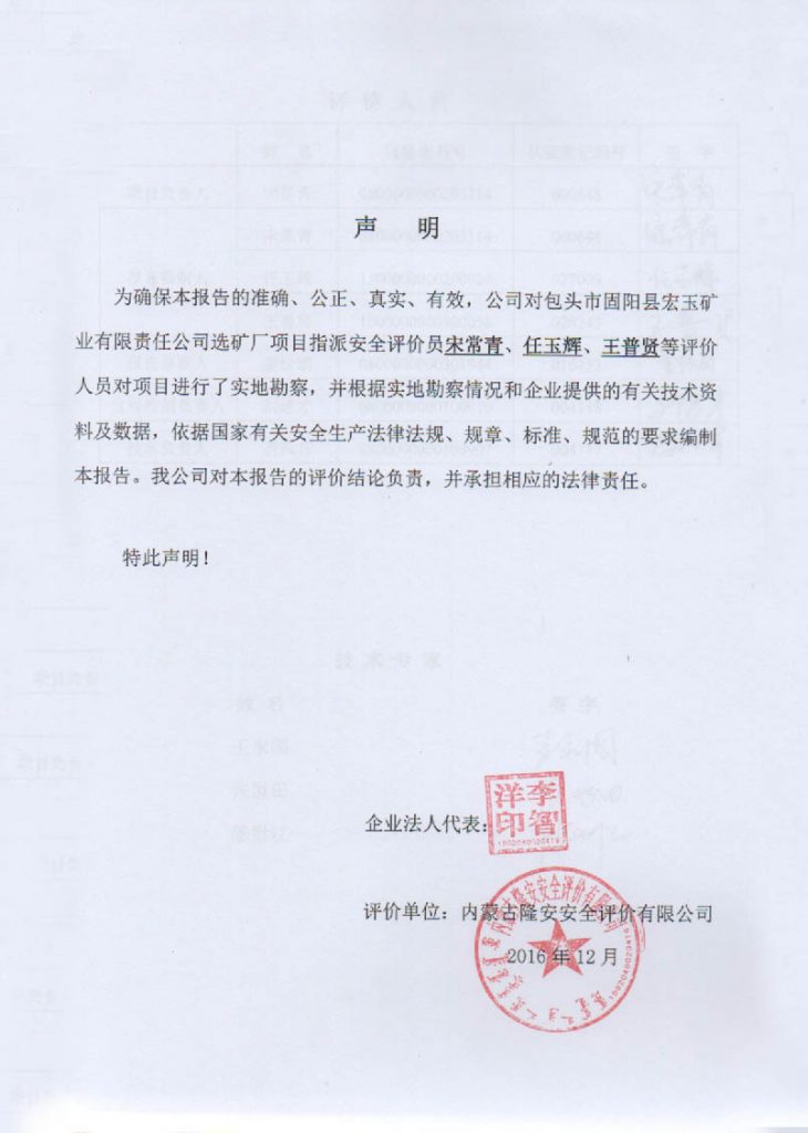 包頭市固陽縣宏玉礦業有限責任公司選礦廠項目安全現狀評價報告–簽字表